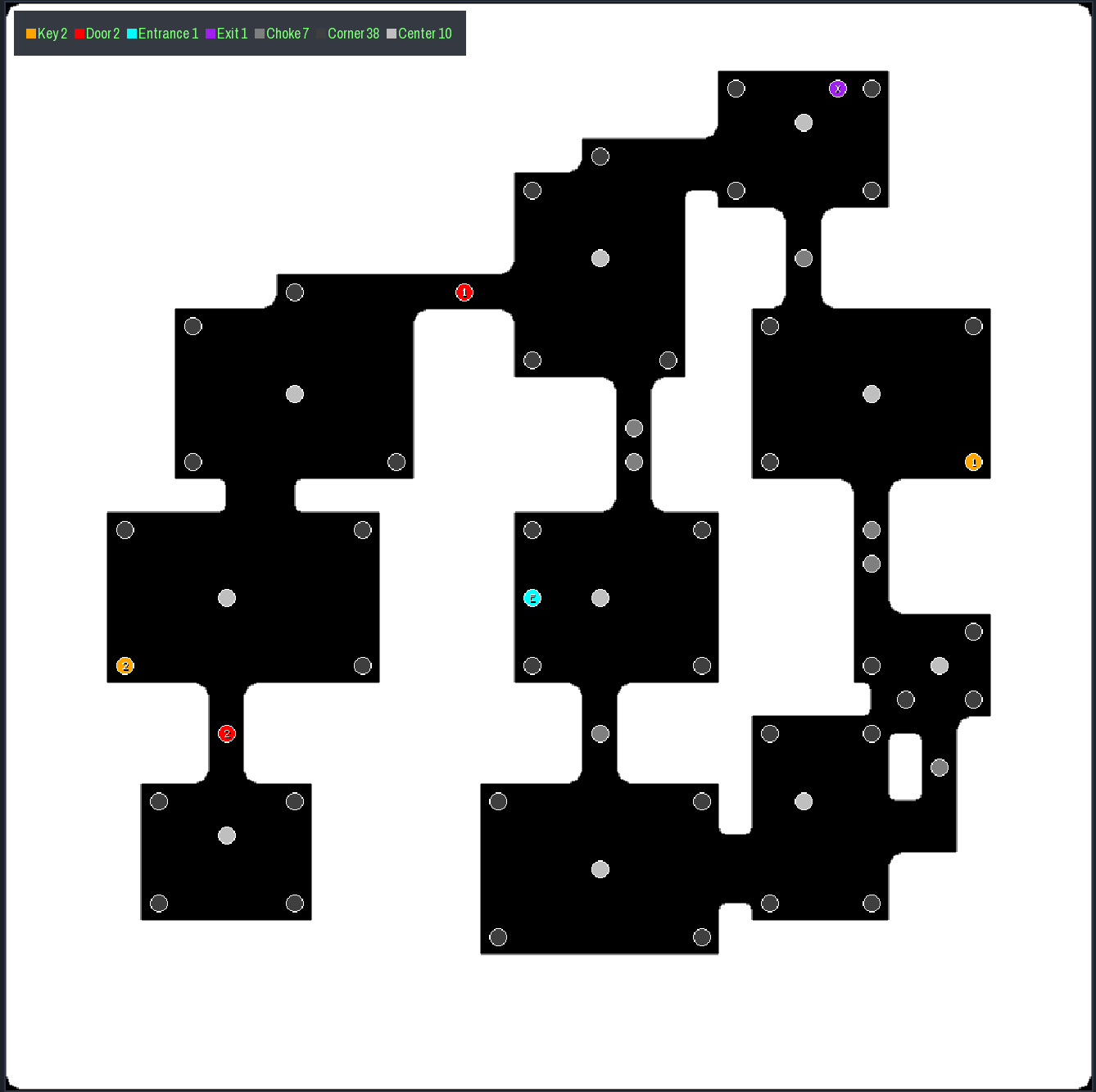 - Optional Marker Layers: New marker generation adds a dedicated layer in TMX exports for elements like entrances/exits, keys/doors, corners, room centers, choke points, and points of interest (such as areas behind locked doors).